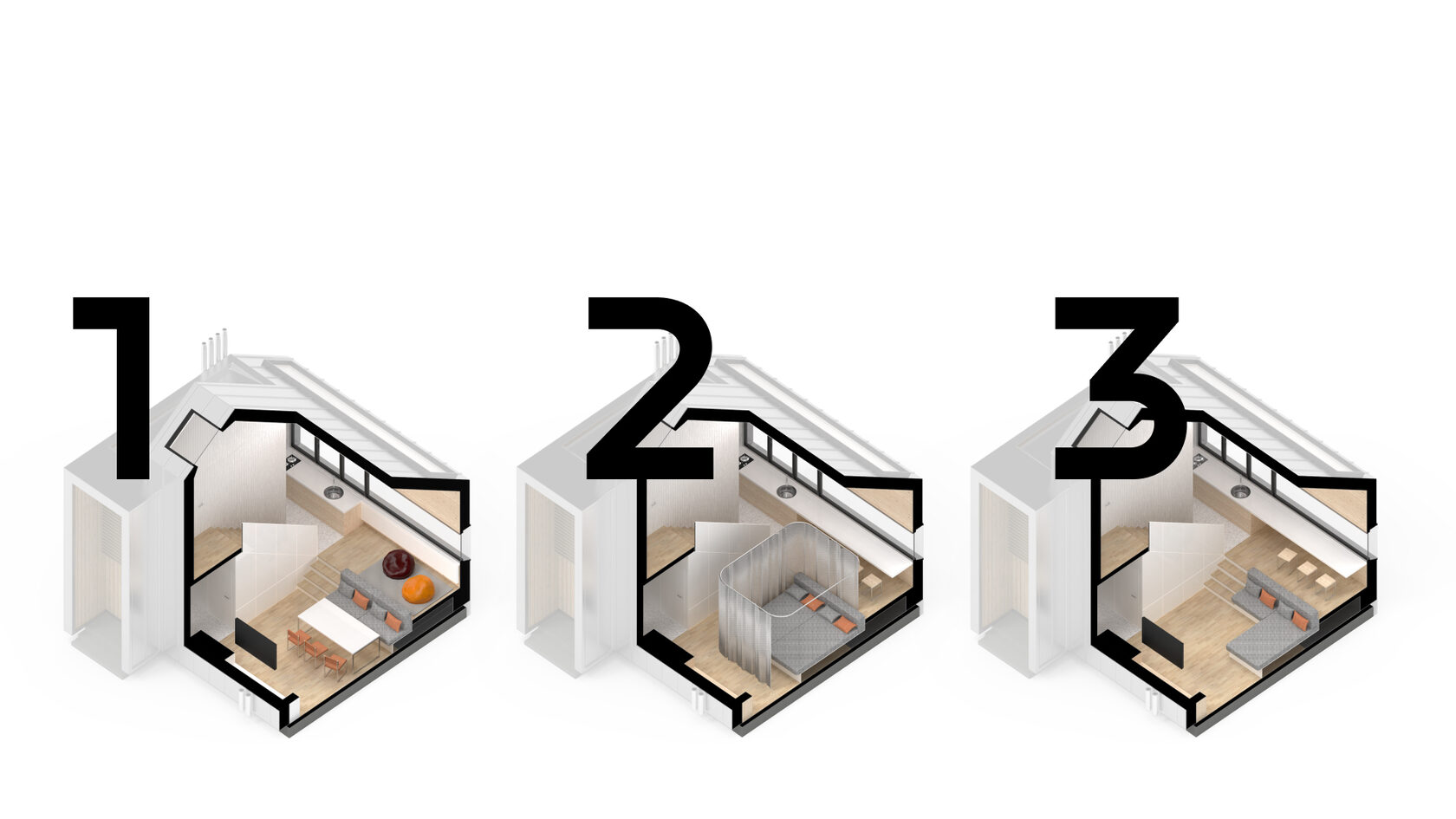 DOMхDOM – это палитра опций, начиная от состава внешних модулей и типа отделки фасадов, до трансформации внутренних пространств и гибкой настройки помещений.